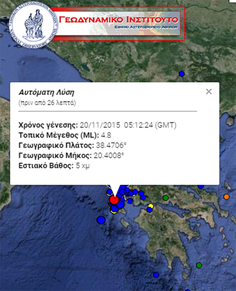 Σεισμός 4,8 Ρίχτερ βορειοδυτικά της Ιθάκης
