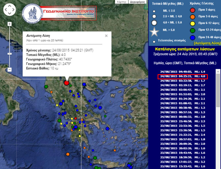 Σεισμική δόνηση μεγέθους 4 βαθμών της κλίμακας Ρίχτερ σημειώθηκε στις 7.25 το πρωί της Δευτέρας στη Φλώρινα, σύμφωνα με την προκαταρκτική αυτόματη λύση του Γεωδυναμικού Ινστιτούτου Αθηνών.