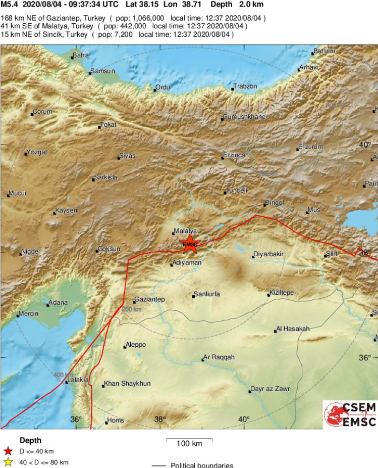 Το επίκεντρο του σεισμού εντοπίζεται 168 χλμ. βορειοανατολικά του Γκαζιαντέπ, ενώ το εστιακό βάθος τοποθετείται στα 2 χλμ.