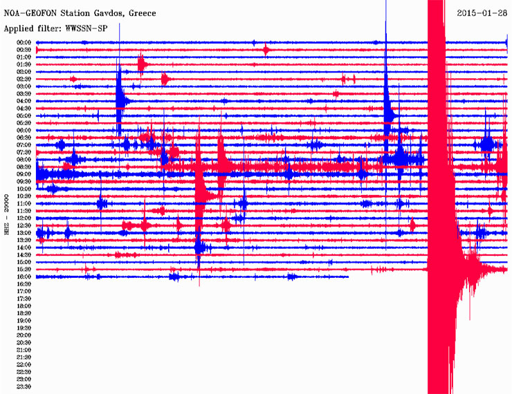 Δείτε πώς κατέγραψε τη δόνηση ο σεισμογράφος του Γεωδυναμικού Ινστιτούτου του Εθνικού Αστεροσκοπείου Αθηνών που είναι εγκατεστημένος στη Γαύδο