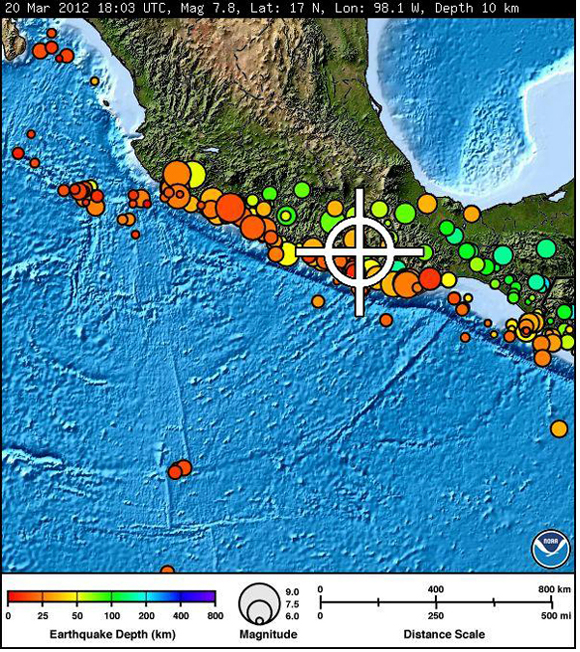 Το επίκεντρο του σεισμού εντοπίζεται 108 μίλια (186 χλμ.) ανατολικά του Ακαπούλκο, 8 χλμ. νοτιοανατολικά της Xochistlahuaca και 29 χλμ. ανατολικά της επαρχίας Ομετεπέκ, στην πόλη Γκερέρο, ενώ το εστιακό του βάθος υπολογίζεται στα 18 χλμ..