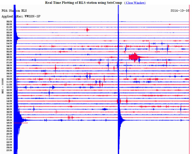Δείτε πώς κατέγραψε τη δόνηση ο σεισμογράφος του Γεωδυναμικού Ινστιτούτου του Εθνικού Αστεροσκοπείου Αθηνών που είναι εγκατεστημένος στη Ρίολο