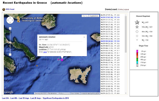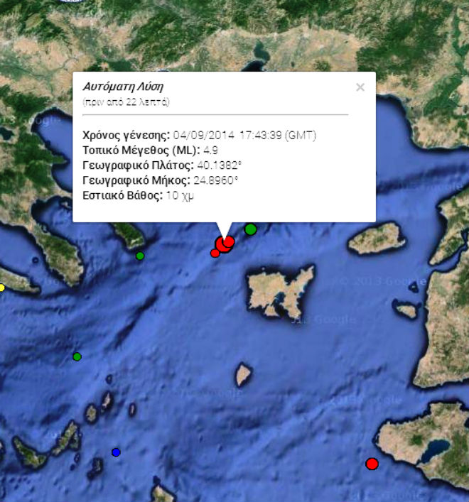 Σεισμική δόνηση μεγέθους 4,8 βαθμών της κλίμακας Ρίχτερ σημειώθηκε στις 20:43, στο θαλάσσιο χώρο μεταξύ Λίμνου και Θάσου, σύμφωνα με την αυτόματη λύση του Γεωδυναμικού Ινστιτούτου Αθηνών.