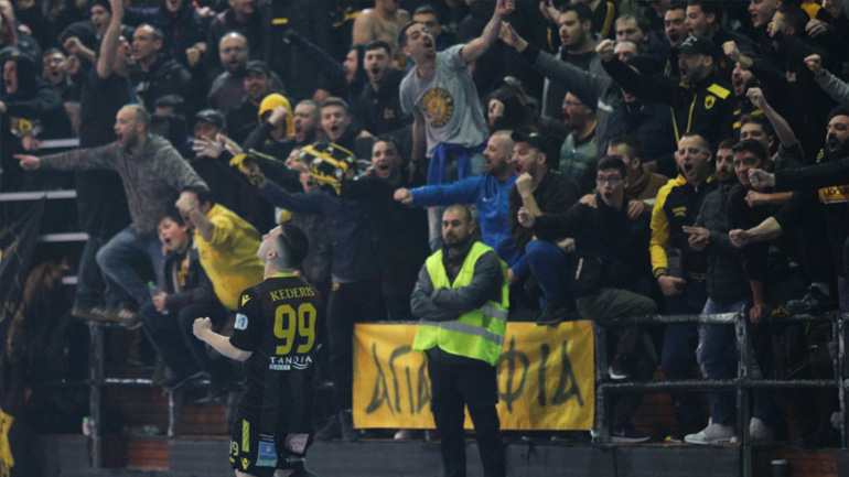 Η Ντράμεν ισοφάρισε 30-30, τρία λεπτά πριν τη λήξη, αλλά τα γκολ των Μυλωνά και Μπουνέτα έδωσαν ξανά προβάδισμα στην ΑΕΚ.
