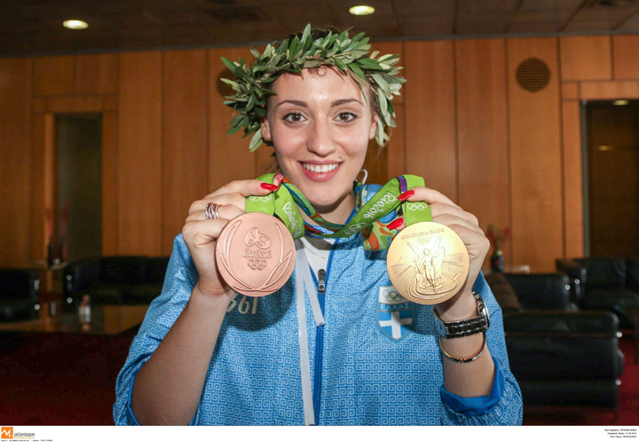 Η 20χρονη Δραμινή σκοπεύτρια με τα δύο μετάλλια στο λαιμό της, υπέγραψε αυτόγραφα, φωτογραφήθηκε και απόλαυσε τις στιγμές με το χαμόγελο ζωγραφισμένο στο πρόσωπό της.