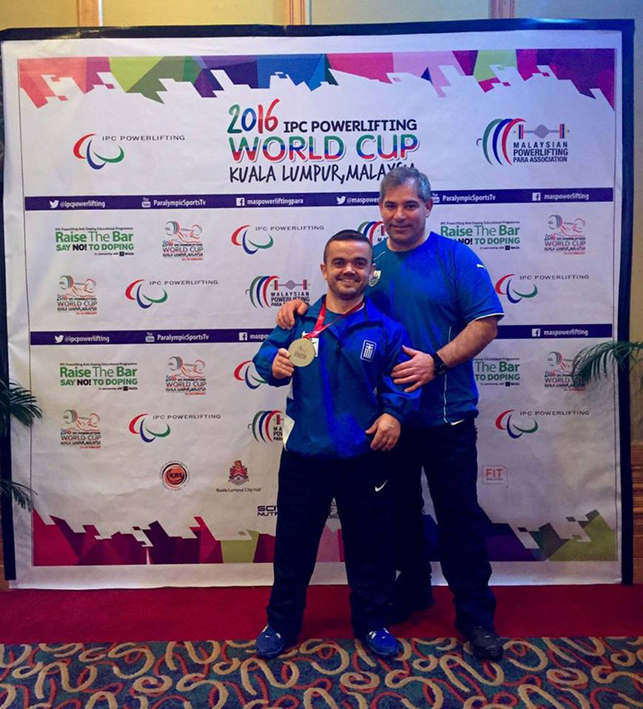 Ο Έλληνας πρωταθλητής, ο οποίος έχει εξασφαλίσει ήδη την πρόκρισή του για τους Παραολυμπιακούς Αγώνες του Ρίο, είχε δύο έγκυρες προσπάθειες στα 170 και 177 κιλά αντίστοιχα, όμως δεν μπόρεσε να σηκώσει τα 182 κιλά στην τρίτη προσπάθεια, που θα ισοδυναμούσε με χρυσό μετάλλιο και νέο πανελλήνιο ρεκόρ. Έτσι με 177 κιλά κατέλαβε την δεύτερη θέση στην κατηγορία, πίσω από τον Μπιν Αν Νγκουγιέν (Βιετνάμ) που σήκωσε 180 κιλά. Τρίτος στην κατηγορία ήταν ο Κινέζος Γιαν Ουάνγκ με 171 κιλά.