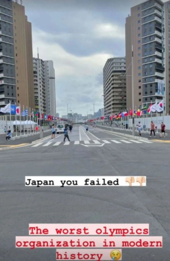 Παράλληλα, ανέβασε και ένα story, στο οποίο γράφει: «Ιαπωνία, απέτυχες. Η χειρότερη οργάνωση στη νεότερη ιστορία των Ολυμπιακών Αγώνων».