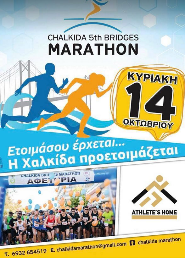Αξίζει να σημειωθεί ότι το «CHALKIDA BRIDGES MARATHOΝ» διεξάγεται για πέμπτη συνεχή χρονιά και περιλαμβάνει Ημιμαραθώνιο 21,1 Χλμ με ταυτόχρονους αγώνες 5Χλμ. και 1 Χλμ. για παιδιά Δημοτικού – Γυμνασίου.