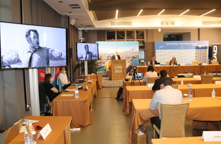 Με επιτυχία ολοκληρώθηκαν οι εργασίες της εκλογοαπολογιστικής Γενικής Συνέλευσης της Ευρωπαϊκής Ομοσπονδίας Τένις, που διοργάνωσε η Ελληνική Φίλαθλη Ομοσπονδία Αντισφαίρισης με τη στήριξη της Περιφέρειας Κρήτης, 22-24 Οκτωβρίου 2020, στο ξενοδοχείο LyttosBeach στη Χερσόνησο. Η Γενική Συνέλευση είχε αναβληθεί τον Μάρτιο λόγω της πανδημίας και πραγματοποιήθηκε «υβριδικά» το περασμένο τριήμερο, με τη συμμετοχή 49 χωρών, με φυσική παρουσία εκπροσώπων 11 χωρών και μέσω τηλεδιάσκεψης εκπροσώπων 38 χωρών.