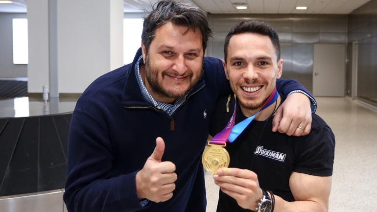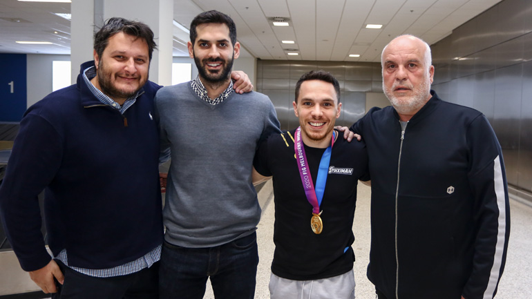 Ο Έλληνας παγκόσμιος πρωταθλητής των κρίκων και χρυσός Ολυμπιονίκης του Ρίο επέστρεψε στην Ελλάδα από τη Μελβούρνη, όπου κατέκτησε στους κρίκους το χρυσό μετάλλιο στο Παγκόσμιο Κύπελλο Ενόργανης Γυμναστικής.