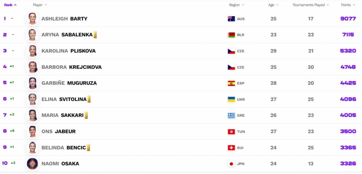 Η σπουδαία Ελληνίδα αθλήτρια βρίσκεται επίσης στο Νο6 του Race, δίνοντας “μάχη” για να βρεθεί στα WTA Finals. Για την ιστορία, στην πρώτη θέση παραμένει η Άσλεϊ Μπάρτι, με την Αρίνα Σαμπαλένκα στη δεύτερη και την Καρολίνα Πλίσκοβα στην τρίτη θέση.
