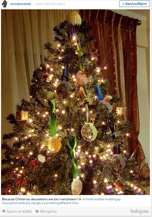 Σε χριστουγεννιάτικο κλίμα έχει μπει η Άννα Κορακάκη. Η Ελληνίδα Ολυμπιονίκης της σκοποβολής ανέβασε στον λογαριασμό της στο instagram φωτογραφία με το χριστουγεννιάτικο δέντρο της, το οποίο στόλισε με τα μετάλλια που κατέκτησε στους Ολυμπιακούς Αγώνες του Ρίο!