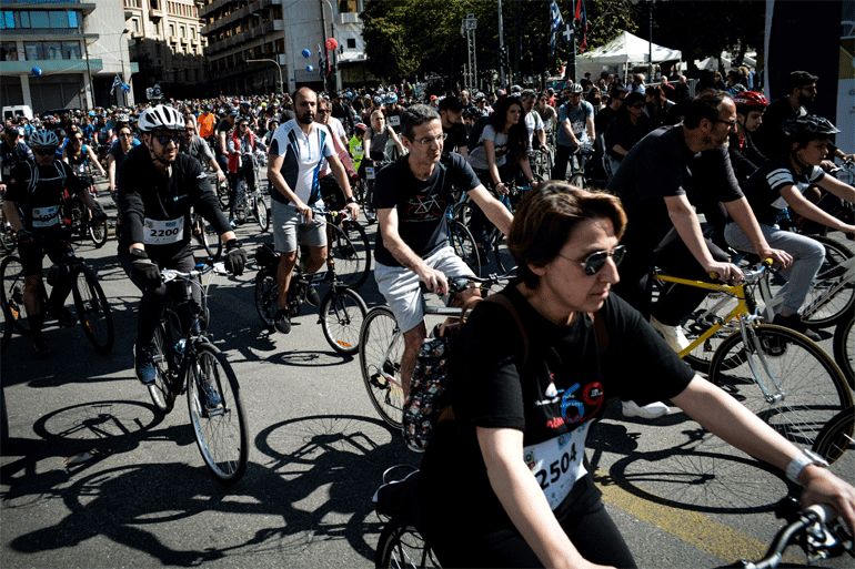 Για πρώτη φορά ο Ποδηλατικός Γύρος της Αθήνας έδωσε τη δυνατότητα στους ποδηλάτες να διασχίσουν την πόλη και να ακολουθήσουν μία διαδρομή 15χλμ και μία πιο μικρή, των 3,5χλμ.