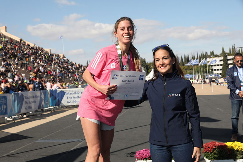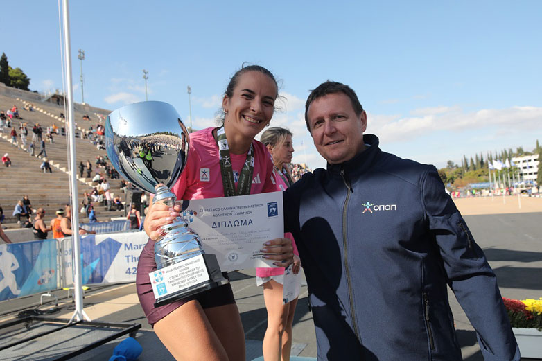 Η Σταματία Νούλα, πρώτη στο Πανελλήνιο Πρωτάθλημα Μαραθωνίου, και ο Pavel Mucha, Chief Financial Officer του ΟΠΑΠ