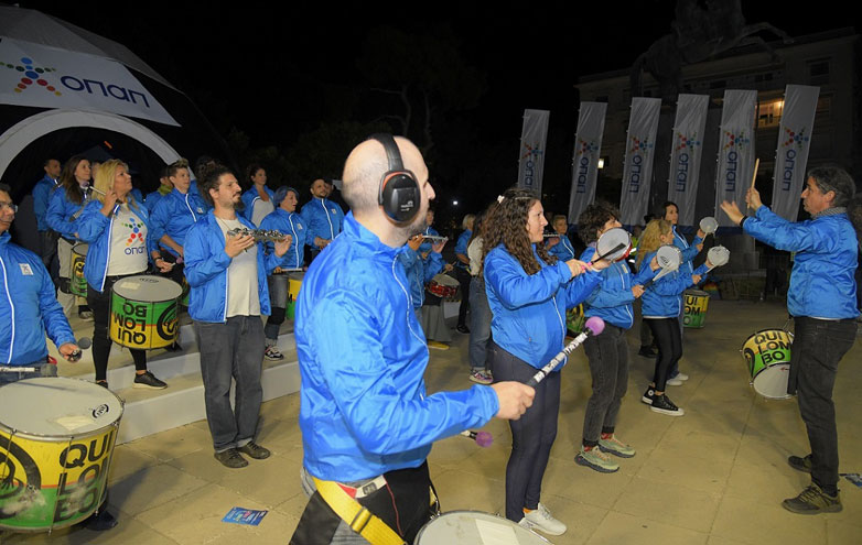 Η ομάδα κρουστών Quilombo στον θόλο του ΟΠΑΠ στο Χωριό των Χορηγών