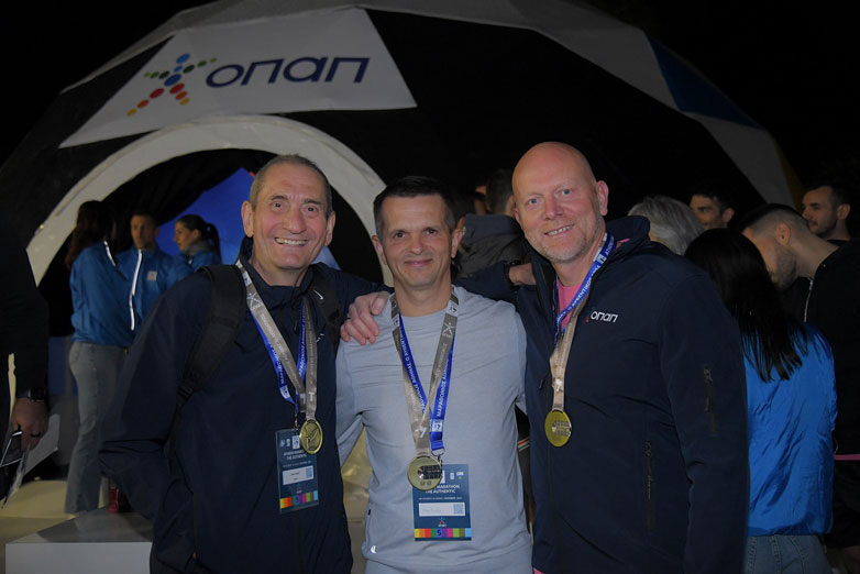 Ο Γιώργος Μενής, που τερμάτισε τρίτος στον Αυθεντικό Μαραθώνιο, και ο Ηλίας Κατσαρός, Chief Retail Officer του ΟΠΑΠ