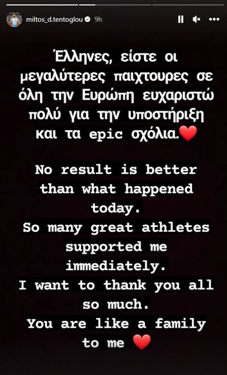 Το όνομα του Μίλτου Τεντόγλου έφτασε να γίνει πρώτο trend στο «ελληνικό» Twitter με τον ίδιο τον αθλητή σε στόρι του στο Instagram να ευχαριστεί τους Έλληνες για τη στήριξη που του παρείχαν μετά την ακατανόητη απόφαση της παγκόσμιας ομοσπονδίας να ακυρώσει το άλμα στα 8,40 μ.