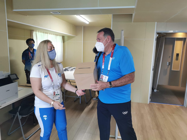 «Είμαι πολύ χαρούμενος που κατάφερα, παρά τα μέτρα για την πανδημία, να επισκεφτώ την ελληνική ομάδα στο Ολυμπιακό Χωριό. Ευτυχώς όλα πάνε καλά, οι αθλητές μας είναι υγιείς και δεν αντιμετωπίζουν κανένα πρόβλημα. Όσους συνάντησα, τους ευχήθηκα καλή επιτυχία στον αγώνα τους και τους είπα ότι θα είμαι κοντά τους και θα τους παρακολουθώ. Είμαι σίγουρος ότι και αυτή τη φορά, οι αθλητές και οι αθλήτριες μας, θα μας κάνουν υπερήφανους», είπε ο Πρόεδρος της ΕΟΕ.