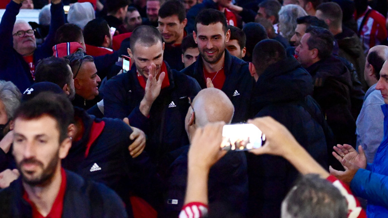 Μετά το τέλος του δεύτερου ημιτελικού φίλαθλοι της ομάδας του Πειραιά συγκεντρώθηκαν  έξω από το «Μελίνα Μερκούρη», όπου έστησαν ένα ερυθρόλευκο πάρτι, αποθεώνοντας τους παίκτες του Αλμπέρτο Τζουλιάνι.