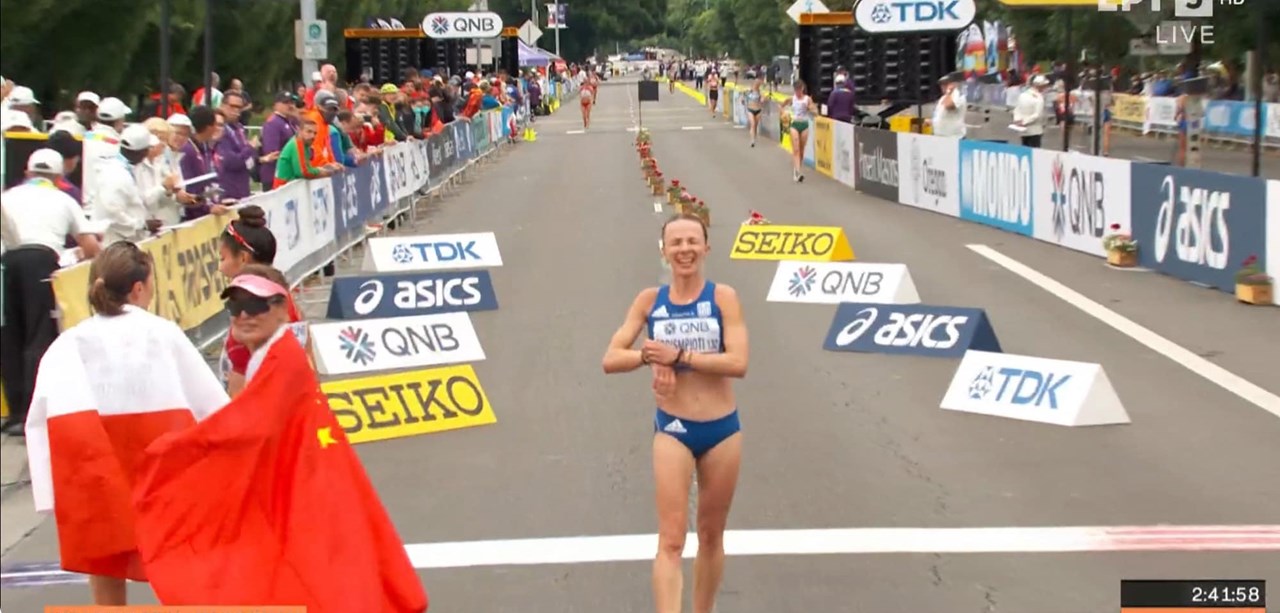 4η θέση με μεγάλο Πανελλήνιο ρεκόρ 2:41:58 και φανταστική εμφάνιση στα 35 χλμ. Βαδην, στο Παγκόσμιο Πρωτάθλημα @WCHoregon22! Πολλά συγχαρητήρια στην πρωταθλήτριά μας!#segas #werunwejumpwethrow #wewalk