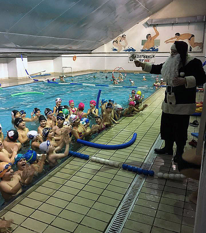 Μια μεγάλη έκπληξη περίμενε περίπου 150 παιδιά των ακαδημιών κολύμβησης του ΠΑΟΚ, όταν ο Άγιος Βασίλης εμφανίστηκε στην πισίνα, κάτω από τη θύρα 5 του γηπέδου της Τούμπας.
