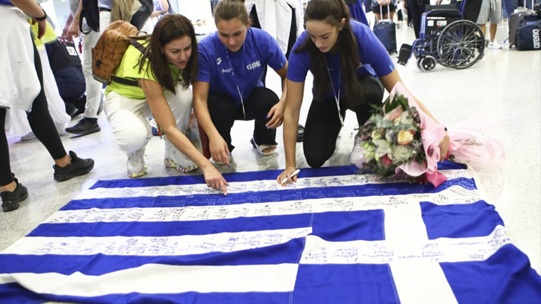 Με το ασημένιο μετάλλιο στις αποσκευές, επέστρεψε στο «Ελευθέριος Βενιζέλος» από την Κίνα η αποστολή της εθνικής ομάδας υδατοσφαίρισης νεανίδων που έλαβε μέρος στο Παγκόσμιο Πρωτάθλημα, το οποίο διεξήχθη στην πόλη Τσενγκντού.