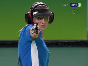 Έσπασε την κατάρα 96 ετών που ήθελε Έλληνα να απουσιάζει απο το βάθρο της σκοποβολής Στην παρθενική της συμμετοχή σε Ολυμπιακούς Αγώνες η Ελληνίδα πρωταθλήτρια της σκοποβολής κατέλαβε την τρίτη θέση στον τελικό του αεροβόλου πιστολιού 10 μέτρων, κατακτώντας έτσι το χάλκινο μετάλλιο.
