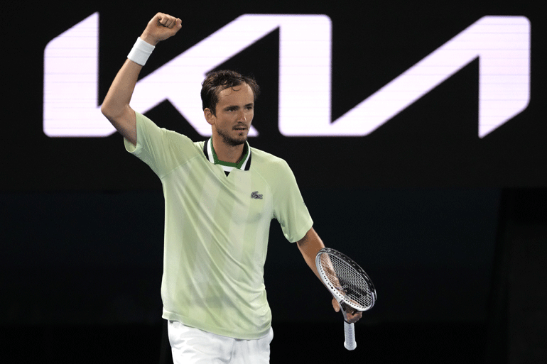 Ο Ντανιίλ Μεντβέντεφ αποδείχθηκε για δεύτερη σερί χρονιά αξεπέραστο εμπόδιο για τον Στέφανο Τσιτσιπά, στον ημιτελικό του Australian Open. Ο Έλληνας τενίστας δεν κατάφερε να βρει απαντήσεις στα πολύ καλά χτυπήματα του Ρώσου, ο οποίος έφτασε στην τελική επικράτηση με 7-6 (5), 4-6, 6-4, 6-1 σε 2 ώρες και 30 λεπτά. Ο Μεντβέντεφ θα αναζητήσει πλέον τον πρώτο τίτλο του στη Μελβούρνη (και δεύτερο συνολικά σε Γκραν Σλαμ) την Κυριακή (30/1), απέναντι στον Ράφαελ Ναδάλ, ενώ ο Τσιτσιπάς σταματά για τρίτη φορά στην τετράδα του τουρνουά και πλέον έχει 1/5 σε ημιτελικούς Γκραν Σλαμ.