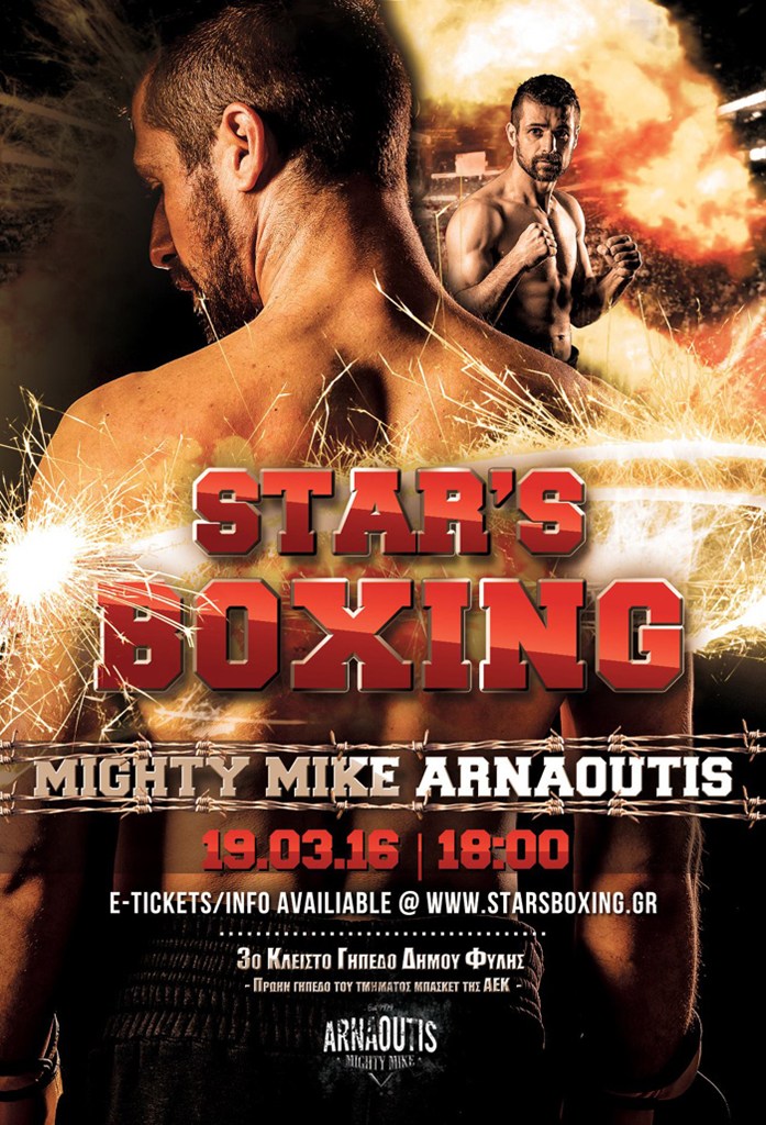 Το διεθνές τουρνουά υψηλών προδιαγραφών «Star’s Boxing» Μιχάλης Αρναούτης θα διεξαχθεί στις 18.00 το απόγευμα του Σαββάτου στο 3ο κλειστό γυμναστήριο Φυλής, υπό την αιγίδα του Συνδέσμου Επαγγελματικής Πυγμαχίας.
