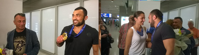 Με πλατύ χαμόγελο, την ικανοποίηση ζωγραφισμένη στο πρόσωπό του και φορώντας το χρυσό μετάλλιο στο στήθος επέστρεψε χθες βράδυ στο αεροδρόμιο Ελευθέριος Βενιζέλος ο Ηλίας Ηλιάδης. Ο παγκόσμιος πρωταθλητής που ανέβηκε στο ψηλότερο σκαλί του βάθρου στο παγκόσμιο πρωτάθλημα της Ρωσίας δεν έκρυβε τη χαρά και την ικανοποίησή του που επέστρεψε στην πατρίδα του μετά τη νικηφόρα μάχη και αγκάλιασε τους δικούς του ανθρώπους ευτυχής και δικαιωμένος. Μαζί με τον εθνικό προπονητή και πατέρα του Νίκο Ηλιάδη, ο θριαμβευτής του Τσέλιαμπινσκ έτυχε θερμής υποδοχής από την οικογένειά του, τη γυναίκα του, τη μητέρα και τις αδελφές του, αλλά και αγαπημένους ανθρώπους από τον χώρο του τζούντο. Φίλοι και συναθλητές κρατώντας την ελληνική σημαία και λουλούδια υποδέχτηκαν τον Ηλία και τον Νίκο Ηλιάδη εκφράζοντας τη μεγάλη χαρά και ενθουσιασμό για την κατάκτηση της κορυφής από το χρυσό παιδί. Ο Ηλίας υπέγραψε αυτόγραφα, φωτογραφήθηκε με μικρά παιδιά και θαυμαστές του στο αεροδρόμιο και παρά την κούραση του απαντούσε σε όλες τις ερωτήσεις. Συγκινημένος ο Ηλίας δήλωσε: