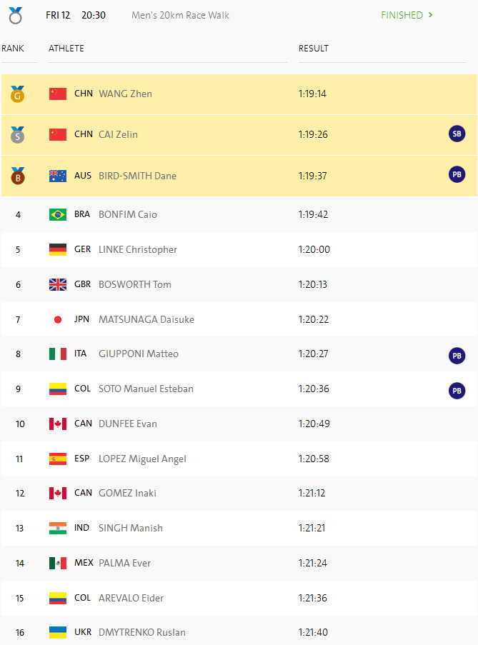 Τα μετάλλια πήραν οι Ζεν Γουάνγκ (Κίνα), Ζελίν Κάι (Κίνα) και Ντάνι Μπερντ-Σμιθ (Αυστραλία).