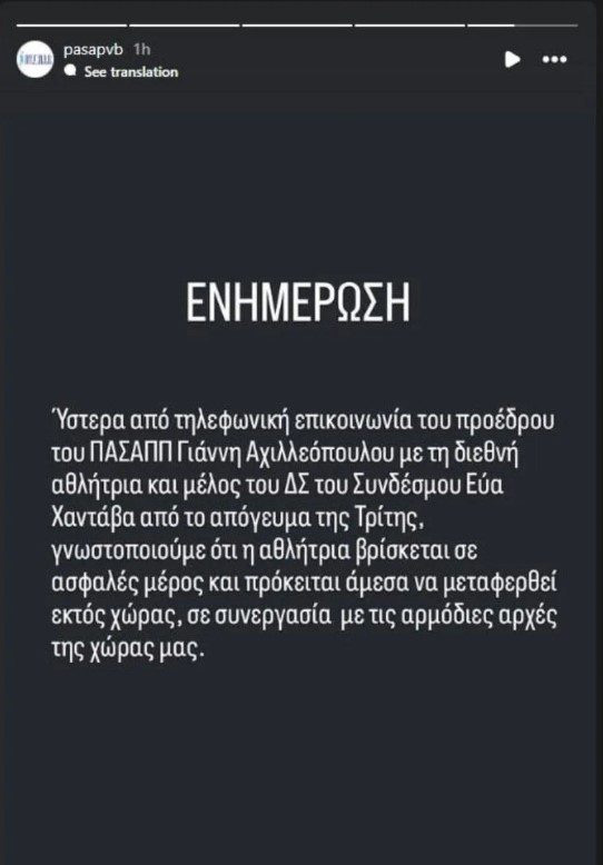 Με ανάρτηση της στα μέσα κοινωνικής δικτύωσης, η Ελληνίδα παίκτρια, ενημέρωσε πως είναι ασφαλής και βρίσκεται εν αναμονή της επιστροφής στη χώρας μας.