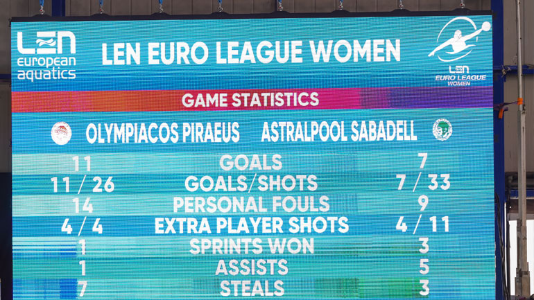 Την κυριαρχία της στον χώρο του ευρωπαϊκού πόλο απέδειξε η γυναικεία ομάδα πόλο του Ολυμπιακού, καθώς κατέκτησε για δεύτερη σερί χρονιά (και τρίτη συνολικά στην ιστορία της) τη Euroleague.