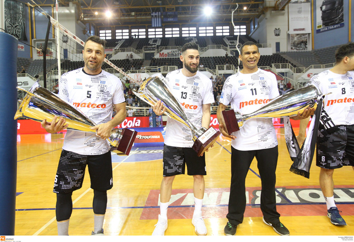 Με την παρουσία πλήθους φιλάθλων ο ΠΑΟΚ γιόρτασε το απόγευμα της Τρίτης την κατάκτηση του πρωταθλήματος της Α1 βόλεϊ. Στο κλειστό γήπεδο του συλλόγου στην Πυλαία, παίκτες και οπαδοί πανηγύρισαν τον τρίτο σερί τίτλο, με τους πρωταγωνιστές να γνωρίζουν την αποθέωση από τον κόσμο του «Δικεφάλου του Βορρά».