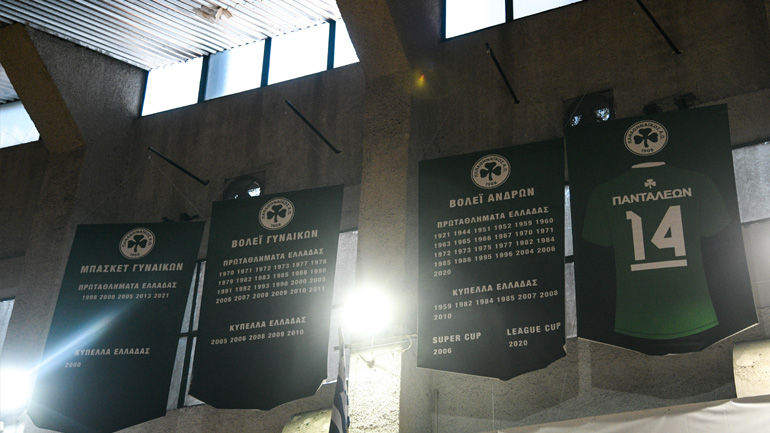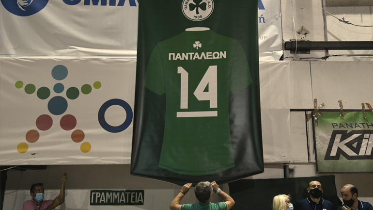 H φανέλα του Σωτήρη Πανταλέοντα με το Νο14 κοσμεί από σήμερα την οροφή του κλειστού «Παύλος Γιαννακόπουλος», δίπλα στους τίτλους του Συλλόγου σε βόλεϊ ανδρών, βόλεϊ γυναικών και μπάσκετ γυναικών.