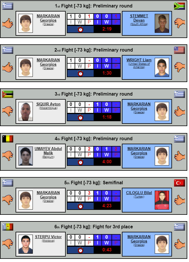 Στα προκριματικά, ο Μαρκαριάν, ο οποίος άνοιξε τον… χορό των ελληνικών συμμετοχών στη διοργάνωση, επικράτησε κατά σειρά των Στέμετ (Ν. Αφρική), Ράιτ (ΗΠΑ), Σιγκουίρ (Μοζαμβίκη) και Ουμάγιεφ (Βέλγιο). Στα ημιτελικά έχασε στο Golden Score από τον Τούρκο Τσίλογλου, για να επιστρέψει στις νίκες στον τελικό της «δεύτερης ευκαιρίας».