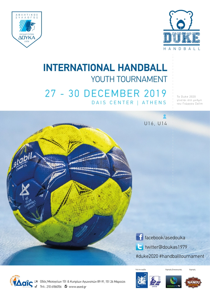 Το «Duke 2020» τελεί υπό την Αιγίδα της Ομοσπονδίας Χειροσφαίρισης Ελλάδος και μάλιστα στις σκέψεις όλων είναι η μικτή ομάδα παίδων της ΕΣΧΑ να λάβει μέρος στο διεθνές τουρνουά.