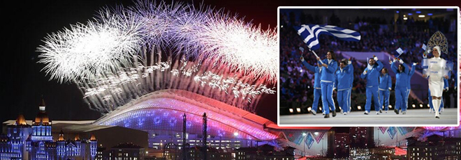 Μάλιστα την ώρα που μπήκαν στο ολυμπιακό στάδιο Fisht οι Έλληνες αθλητές οι διοργανωτές εμφάνισαν με προτζέκτορα έναν χάρτη της Ελλάδας, όπως συνέβη άλλωστε και με τις άλλες χώρες.