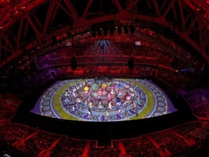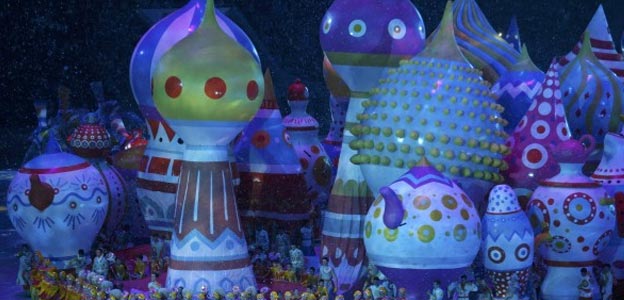 Στην τελετή συμμετείχαν περίπου 3.000 καλλιτέχνες σε ένα σόου διάρκειας δυόμισι ωρών, ενώ συμμετείχε και η Ρωσίδα σοπράνο Άννα Νετρέμπκο, ένα από τα μεγαλύτερα ονόματα της διεθνούς όπερας, που τραγούδησε τον Ολυμπιακό ύμνο.