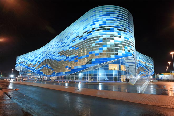 Το Iceberg Skating Palace, είναι χωρητικότητας 12000 θεατών. Θα φιλοξενήσει τους αγώνες καλλιτεχνικού πατινάζ, καθώς και τους αγώνες μικρών αποστάσεων στο πατινάζ ταχύτητας. Για να φτιαχτεί χρησιμοποιήθηκαν 15.000 τόνοι χάλυβα, δηλαδή το διπλάσιο βάρος από όσο έχει ο Πύργος του Άϊφελ.