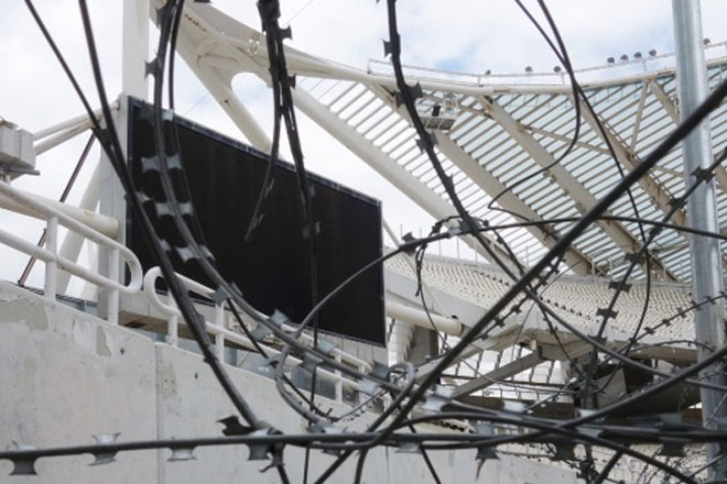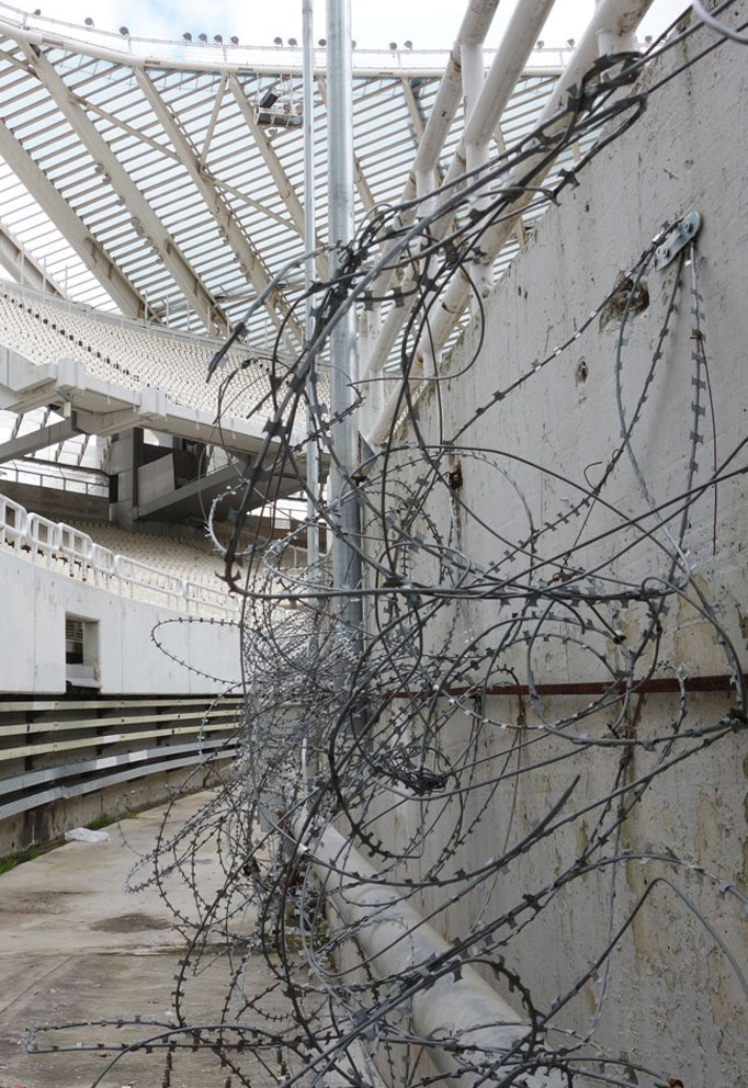Οι άνθρωποι του «δικεφάλου» προκειμένου να αποφύγουν τυχόν έκτροπα οχύρωσαν το ΟΑΚΑ, τοποθετόντας μεταξύ άλλων συρματοπλέγματα με… αγκάθια στην τάφρο του σταδίου και δίχτυα ασφαλείαςμπροστά από το πέταλο των οργανωμένων.