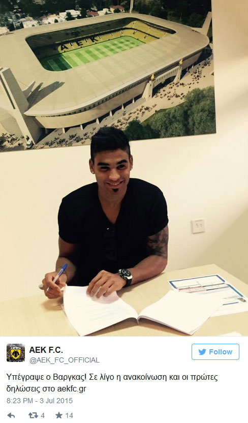 Oλοκληρώθηκε και τυπικά η μεταγραφή του Ρόναλντ Βάργκας στην ΑΕΚ.