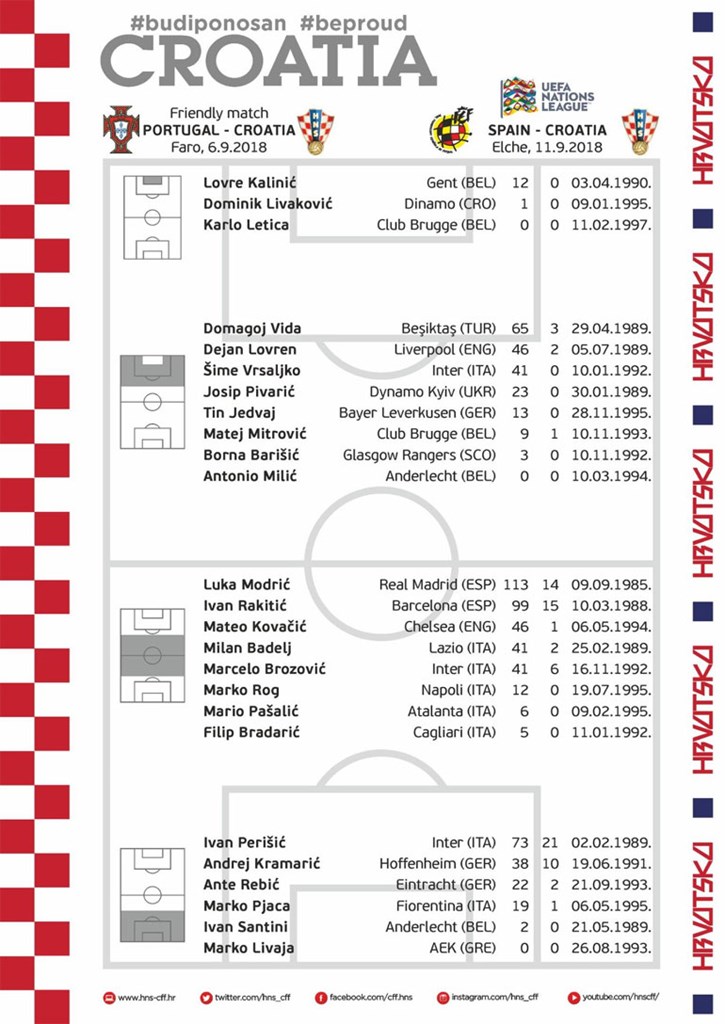 Μέσοι: Μόντριτς, Ράκιτιτς, Κόβατσιτς,Μπρόζοβιτς, Ρόγκ, Πάσαλιτς, Μπράνταριτς