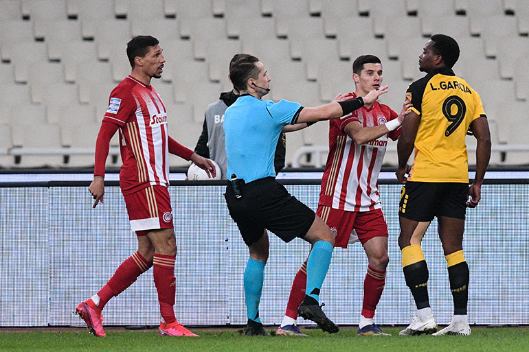 Στο 35’ ο Λιβάι Γκαρσία πήγε να πετύχει πάλι γκολ από… κόρνερ, όπως έκανε την περασμένη Κυριακή (13/12) στον αγώνα με τον Απόλλωνα Σμύρνης, ο Σα δεν μπόρεσε να διώξει κι έδιωξε την τελευταία στιγμή πάνω στη γραμμή με το κεφάλι ο Εμβιλά.