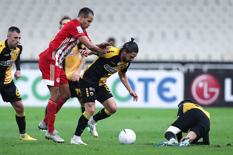 Γκολ: 57′ Βρουσάι (Ολυμπιακός), 80′ Σιμόες (ΑΕΚ)