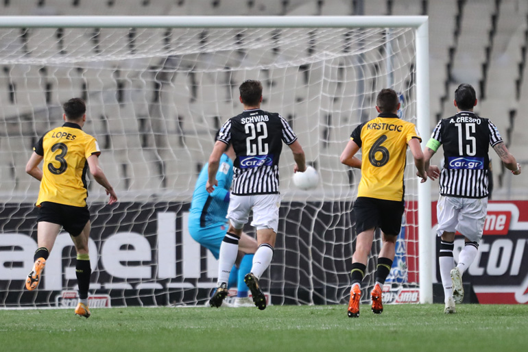 Ένα αριστοτεχνικό φάουλ του Μουργκ στην πρώτη και… μοναδική του επαφή με τη μπάλα (αφού είχε μπει ως αλλαγή λίγο νωρίτερα) διαμόρφωσε το τελικό 1-0 στο 94΄. Ούτε σέντρα δεν πρόλαβαν να κάνουν οι παίκτες της ΑΕΚ που θα προσπαθήσουν να ανατρέψουν αυτό το σκορ στη ρεβάνς της Τούμπας, τη μεγάλη εβδομάδα.