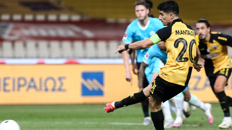 Την εκτέλεση ανέλαβε ο Πέτρος Μάνταλος, ο οποίος όμως δεν κατάφερε να κάνει το 1-0, καθώς ο Πέρβαν έπεσε στη σωστή γωνία και απομάκρυνε σε κόρνερ την μπάλα, κρατώντας ανέπαφη την εστία του.