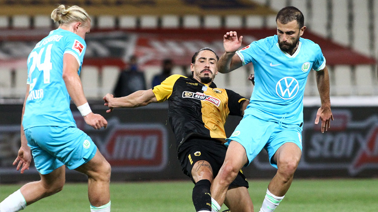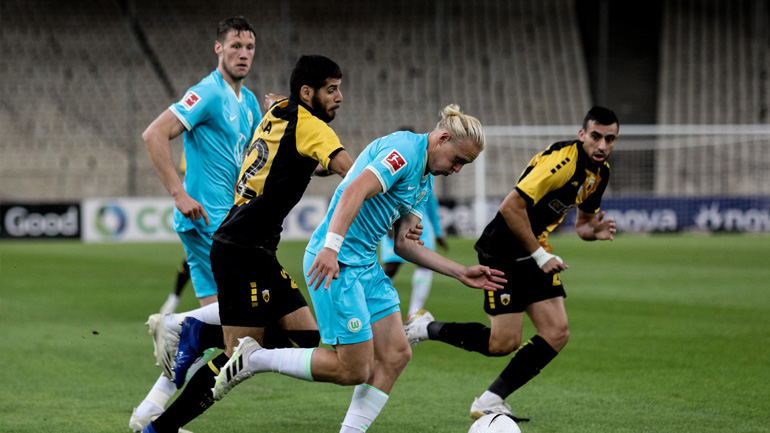 Η ΑΕΚ η οποία είχε πολύ καλή παρουσία στον αγωνιστικό χώρο και δεν επέτρεπε στη Βόλφσμπουργκ να βρει ρυθμό.