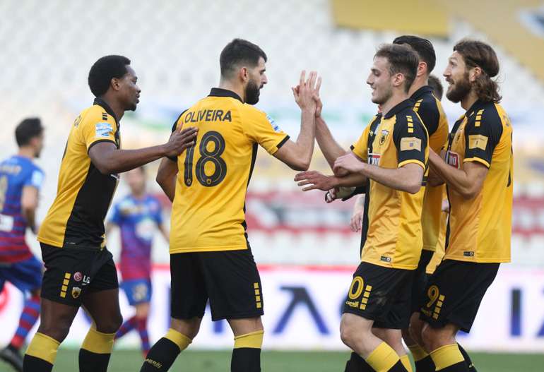 Ένα «οργιώδες» δεκάλεπτο στο πρώτο ημίχρονο ήταν αρκετό για να μετατρέψει τον διαφαινόμενο εφιάλτη, σε… βόλτα στην εξοχή για την ΑΕΚ, που βρέθηκε νωρίς πίσω στο σκορ. Στο 14΄ από λάθος συνεννόηση Κρίστιτσιτς-Νταντσένκο στο κέντρο, ο Νίνης έβγαλε κάθετη στον Δουβίκα ο οποίος πλάσαρε για το 1-0 και το 9ο εφετινό του γκολ.
