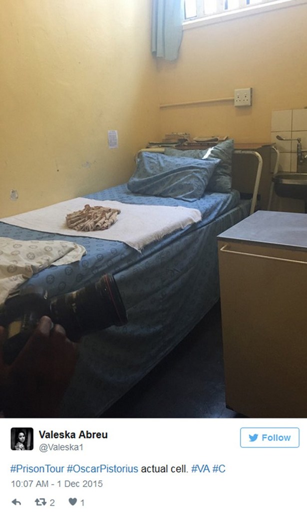 Δημοσιογράφοι κλήθηκαν να επισκεφτούν τις φυλακές «Kgosi Mampuri ΙΙ» στην Πρετόρια, όπου κρατούνταν ο παραολυμπιονίκης από τη Νότια Αφρική. Οι φυλακές στεγάζουν 7.000 κρατούμενους κάτω από άθλιες συνθήκες.